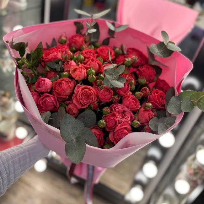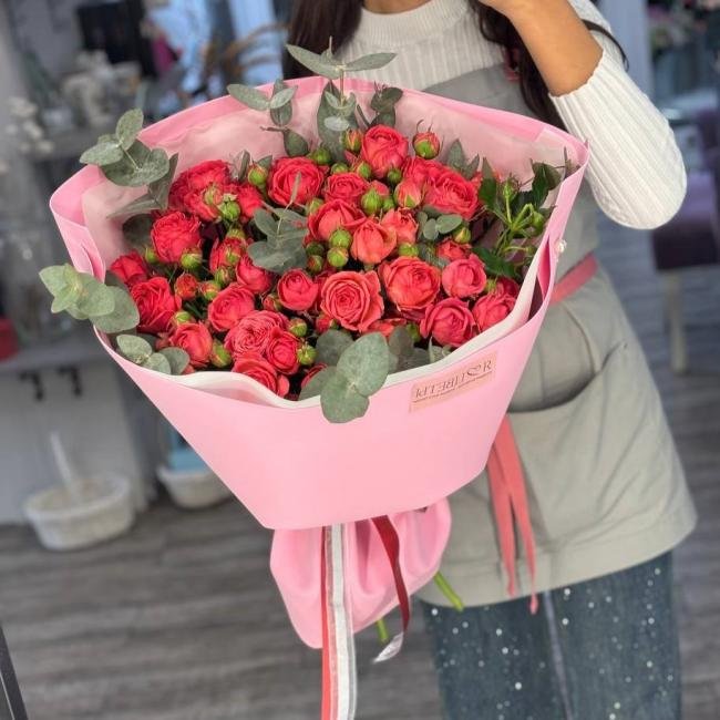 Описание В составе: кустовые розы. Цвет после соглосования.