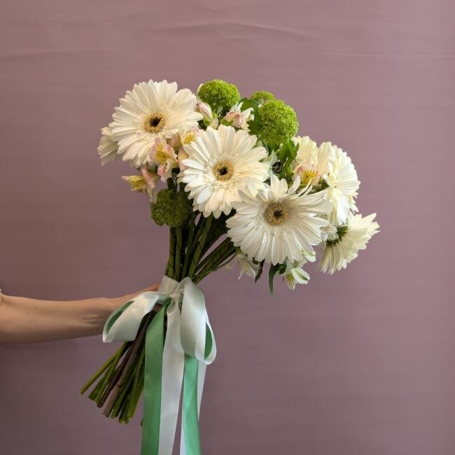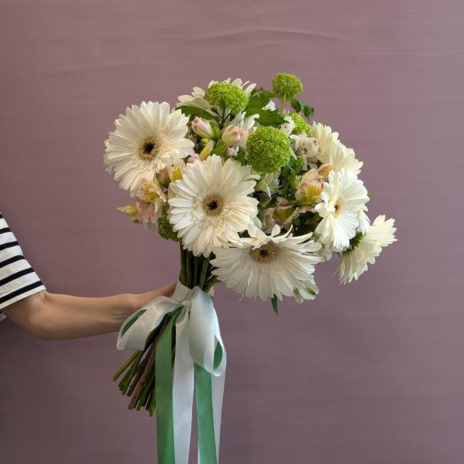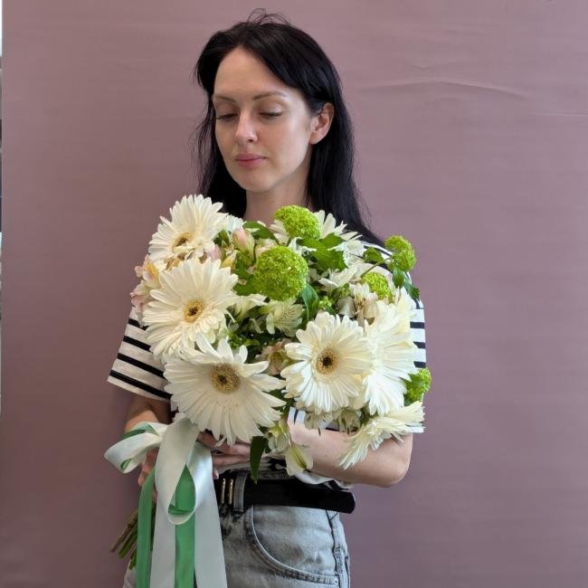 Описание В составе: герберы, альстрамерия, вибурн
