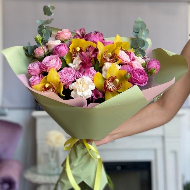 Описание Роскошные орхидеи, нежные розы и альстромерии. Всё самое красивое для Вас в одном букете.