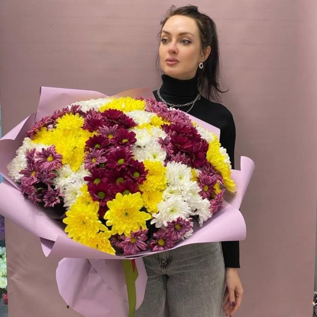 Описание 33 кустовых хризантемы разных цветов, делают этот букет восхитительным