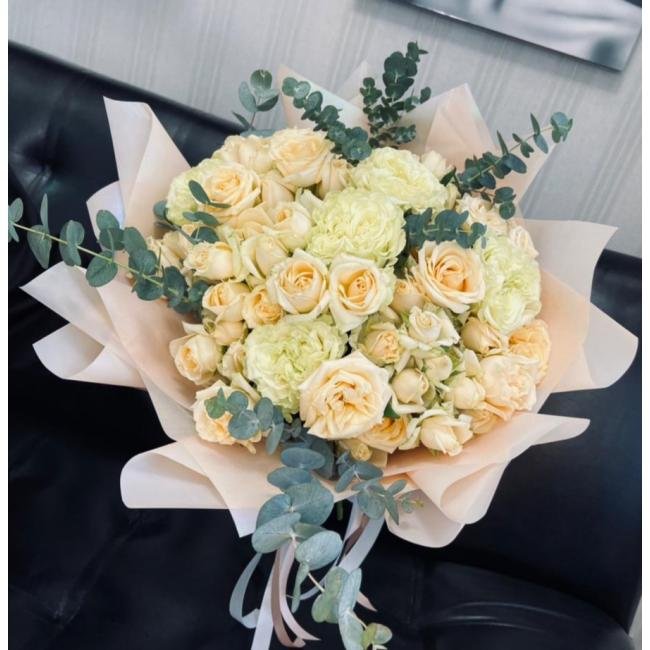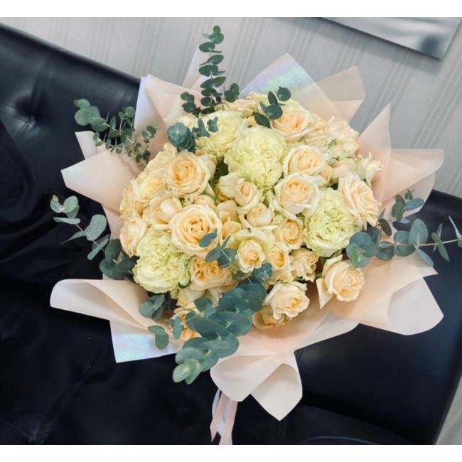 Описание Мы знаем как нравится вам букет " Аморет" с пионами,но к сожалению они бывают по сезону. Поэтому предлагаем букет " Аморет-2" такой же свежий и нежный.