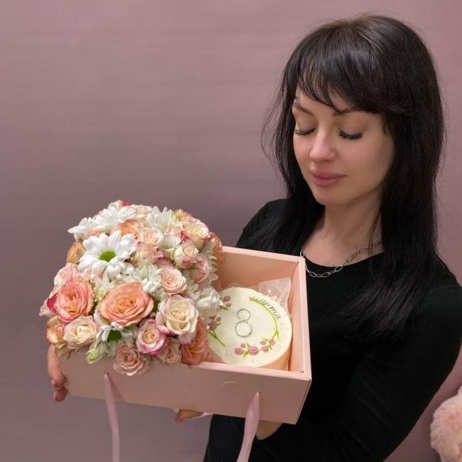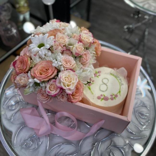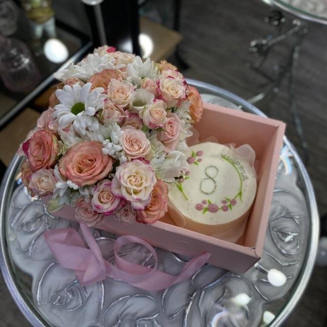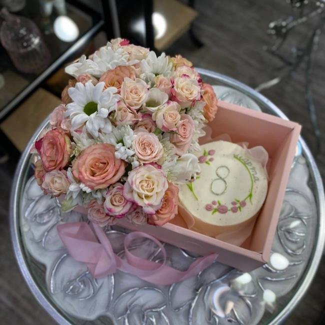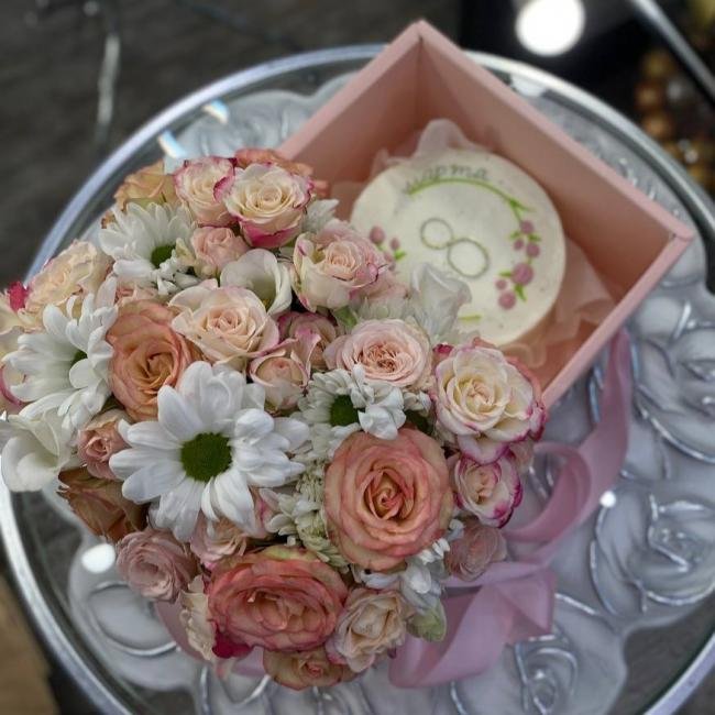 Композиция цветов #93 c бенто-тортиком «#1»
