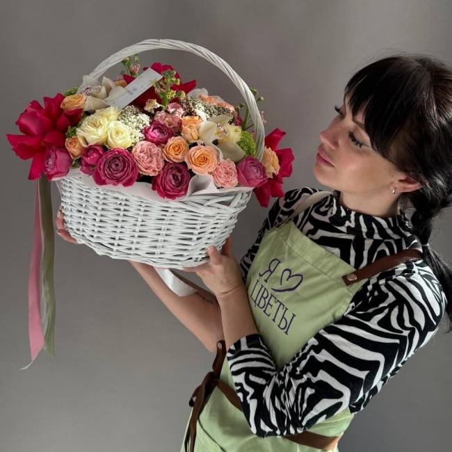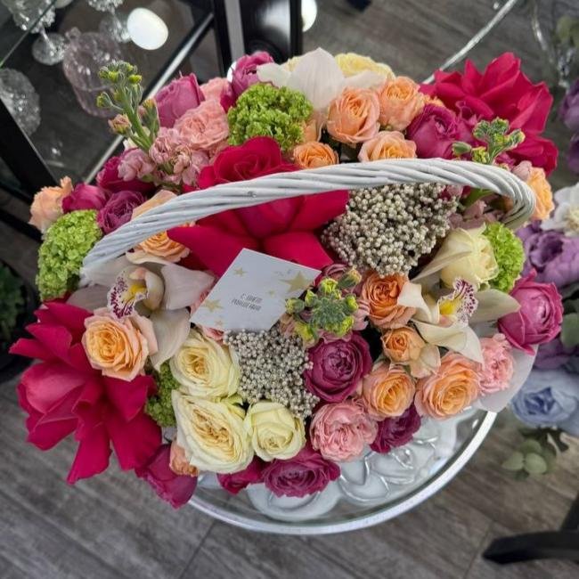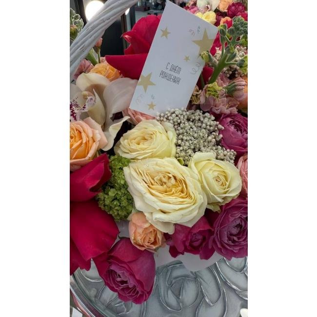 Описание В составе: французская роза, кустовая роза, маттиола, орхидея, зелень.