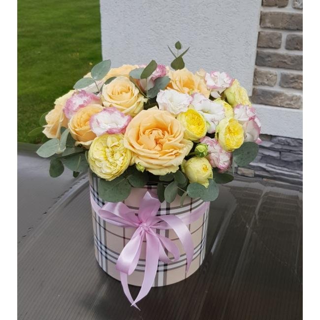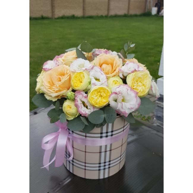 Композиция цветов #5 в шляпной коробке «Жаклин»