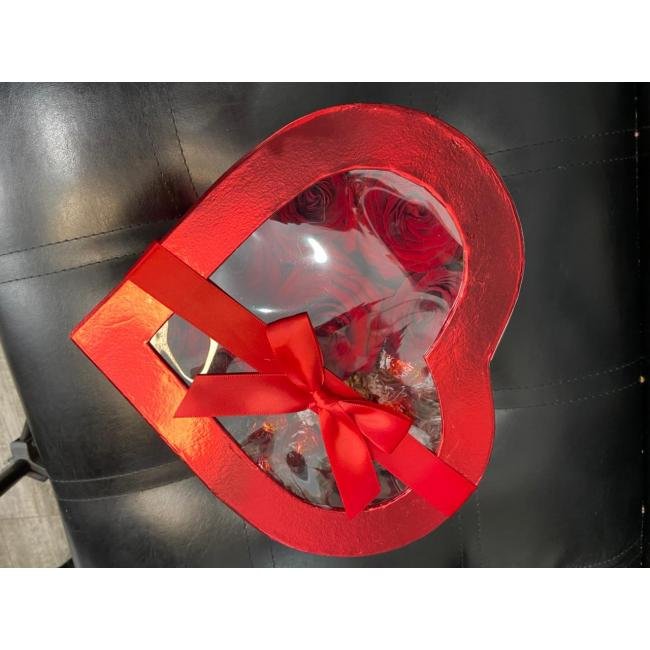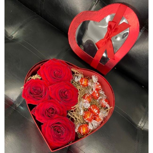 Композиция цветов #11 в коробке-сердце с конфетами «Агния»