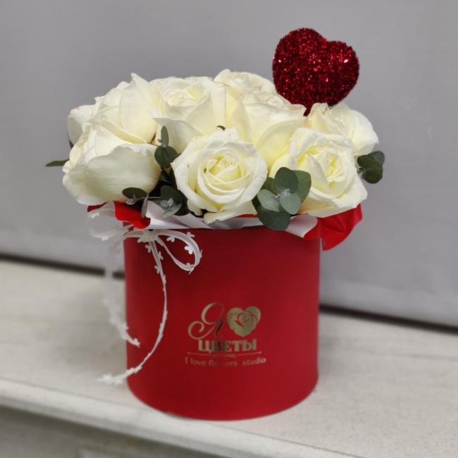 Описание В составе композиции: белые розы Эквадор, декор "сердечко".