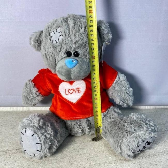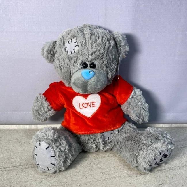 Медведь плюшевый в красной футболке "серый"